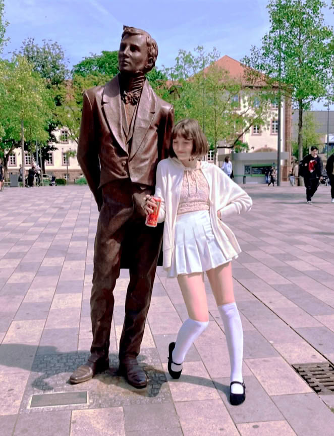 Ava Schumann, geb. 13. Mai 2008 in Frankfurt am Main. Durch ihre ebenfalls malenden Großeltern schon früh mit der Malerei in Berührung gekommen und gefördert. Für die Motive ihrer Bilder sucht sie Referenzen, an die sie sich anlehnt.